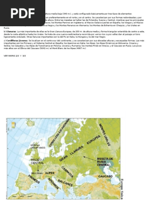 Mapa Fisico De Europa Montanas Llanuras Mesetas Docx Viajes Por Europa Oceano Atlantico