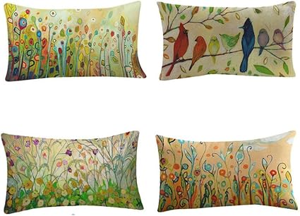 Fossrn Fundas Cojines 30 X 50 Vintage Flor Pajaro Hojas Fundas De Cojines Para Sofa Jardin Cama Decoracion Del Hogar Cuadrado Funda De Almohada 4pc Set Amazon Es Hogar