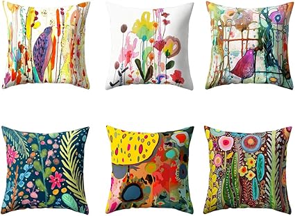 Vlunt 6 Pack Fundas De Cojines Para Sofa Estampados De Acuarelas Flores Y Pajaros Fundas Cojines 45x45cm Cushion Cover Amazon Es Hogar