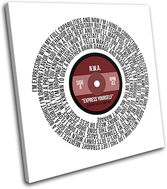 Amazon Com Bold Bloc Design N W A Express Yourself Shabby Chic Record Vinyl Song Lyrics Musical 90x90cm Single Canvas Art Print Box Framed Picture Wall Hanging Hand Made In The Uk