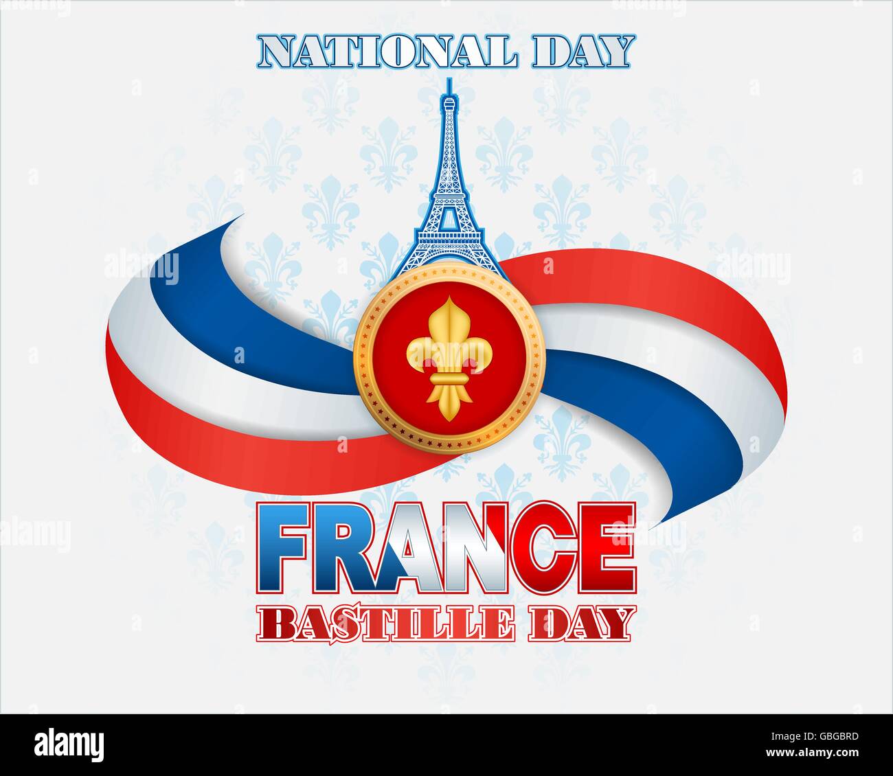 Con El Fondo Los Colores De La Bandera De Francia Torre Eiffel Forma Y Lily Flor Simbolo Para El Dia Nacional De Francia Del Dia De La Bastilla Imagen Vector De Stock