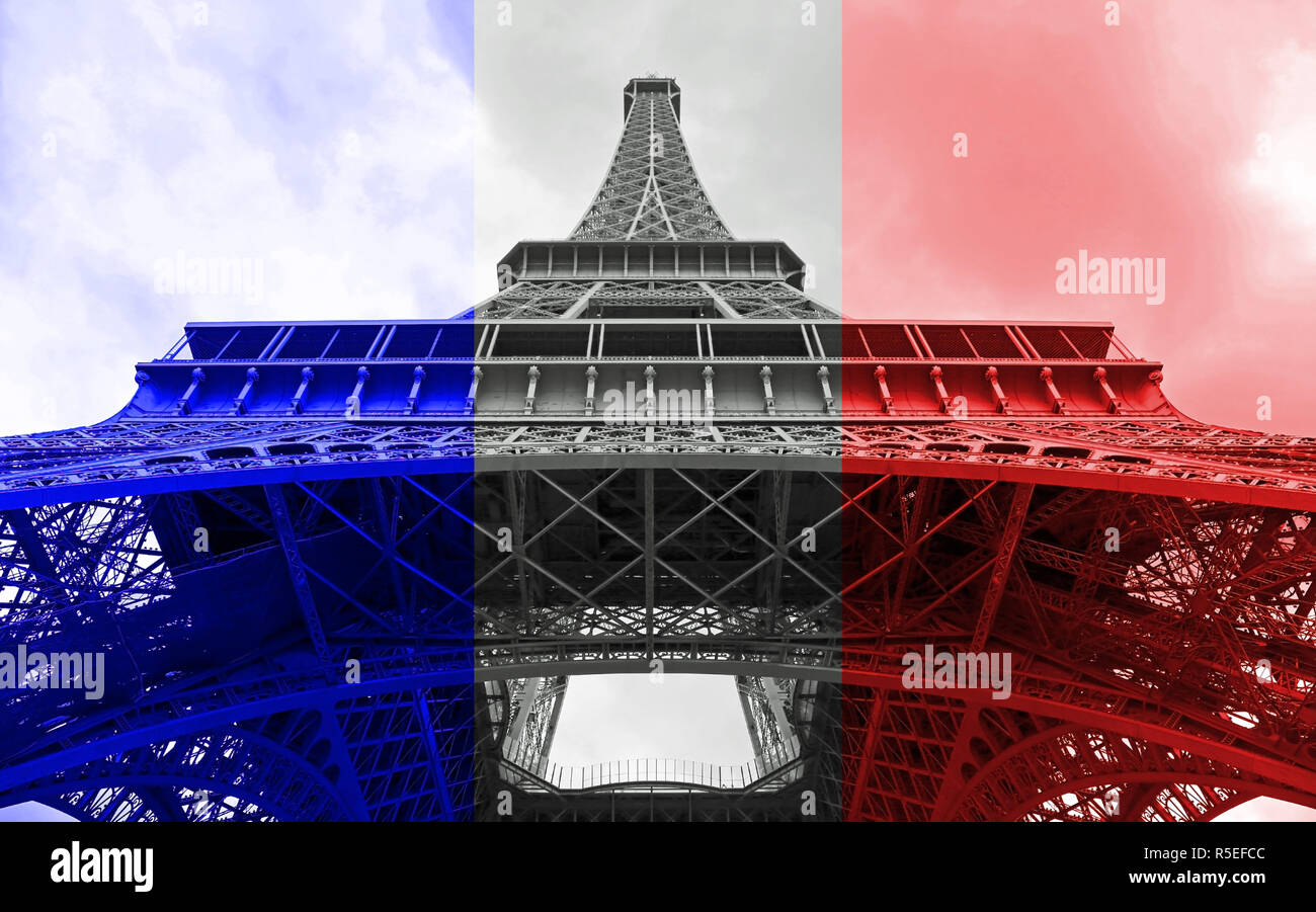 Azul Blanco Y Rojo Son Los Colores De La Bandera Francesa Y La Torre Eiffel Al Fondo Fotografia De Stock Alamy