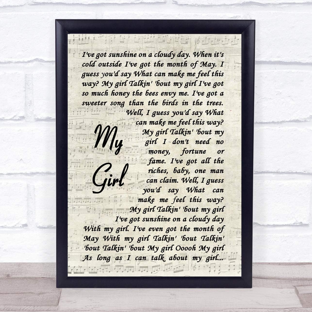 The Temptations My Girl Song Lyrics Music Wall Art Etsy