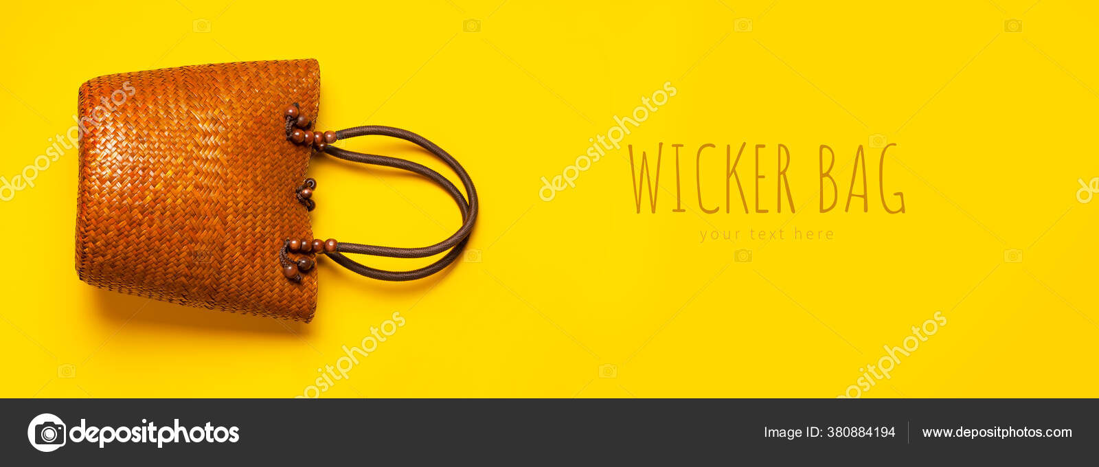 Bolso Ecologico Para Mujer Mimbre Playa Ratan Sobre Fondo Amarillo Foto De Stock C Arkhipenko21