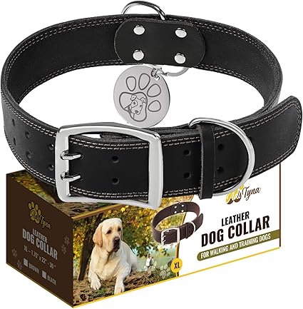 Amazon Com Collar De Perro De Piel Para Perros Extra Grandes Collar De Perro Ancho Resistente Con Hardware De Metal Duradero Y Doble Anillo En D Etiqueta Unica Incluida Xl 1 75