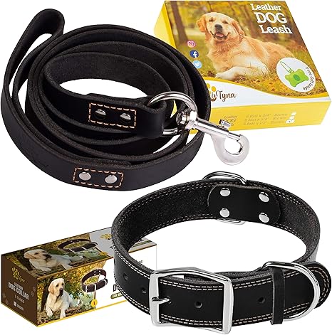 Amazon Com Juego De Collar Y Correa Para Perro De Piel Negra Correa Para Perro De 6 Pies X 3 4 Pulgadas Y Collar Para Perros Grandes Mascotas