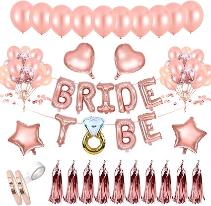 Hen Party Decorations Accessories Rose Gold Aivatoba Bride To Be Banner Hen Do Accessories Decorations Confetti Balloons For Bridal Shower Bachelorette Party Amazon Co Uk Kitchen Home