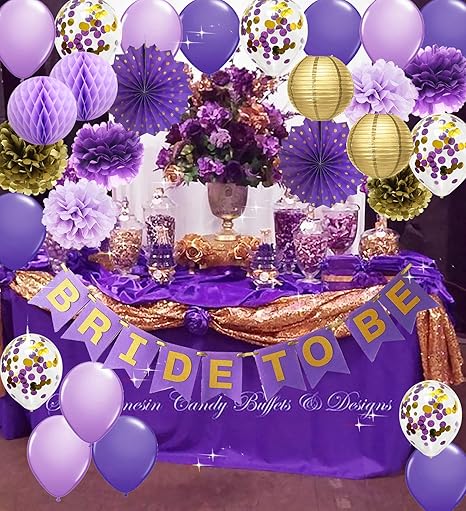 Amazon Com Purple Gold Bridal Shower Decorations Qian S Party Purple Gold Confetti Ballons Polka Dot Fans Bride To Be Banner Purple Gold Hen Party Engagement Banner Bachelorette Party Decorations Home Kitchen