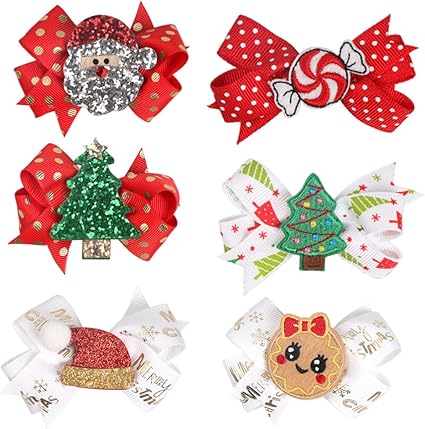 Amosfun Pinzas De Cocodrilo Para El Pelo De Navidad Accesorios Para El Cabello Arcos De Navidad Pinzas Para El Cabello Broches Para La Decoracion Del Cabello Para Fiestas 6 Piezas Estilo Mixto