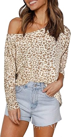 Pinkmstyle Womens Off The Shoulder Leopard Print Tops Long Sleeve Shirts Blouses At Amazon Women S Clothing Store