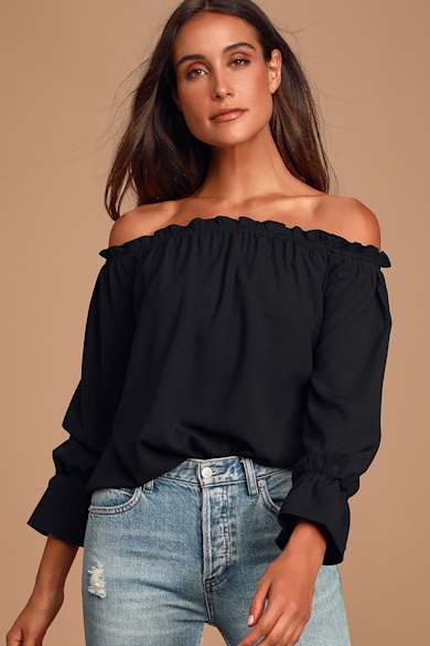 Features of an OffTheShoulder Top At first glance, the most obvious feature of a women's offtheshoulder top is the neckline Allowing the shoulders to be visible, the neckline of an offtheshoulder top lends flirty style to your look Offtheshoulder tops come in a wide variety of fabrics, including acrylic, polyester, cotton, and more. The Lulus Malya Black Long Sleeve OfftheShoulder Top may be basic, but she's sure to step up any OOTD!. Aifer Womens Shirts Off Shoulder Tops Casual Long Sleeve T Shirt Boat Neck Blouse Tops 44 out of 5 stars 355 Save 11% $1699 $ 16 99 $19 $19 5% coupon applied at checkout Save 5% with coupon (some sizes/colors) FREE Shipping on orders over $25 shipped by Amazon.