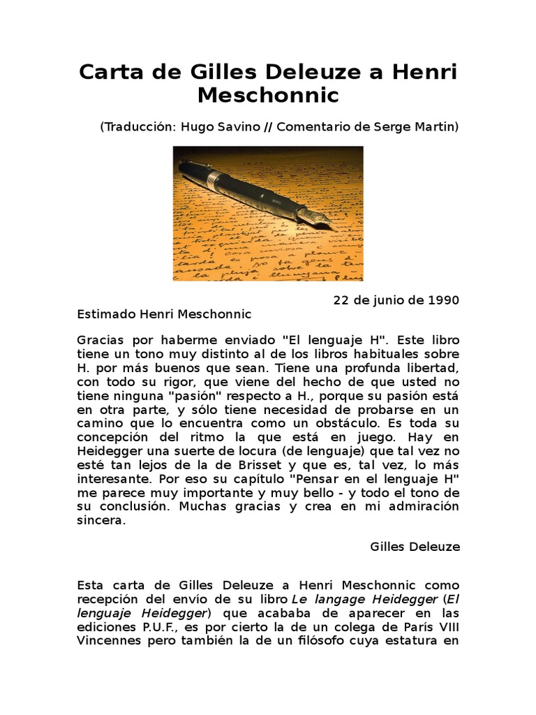Carta De Deleuze A Meschonnic Martin Heidegger Metafora