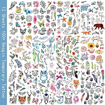 Amazon Com Oottati 12 Hojas Impermeables Para Verano Mas De 100 Disenos De Acuarela Diseno De Flores De Animales Hojas Pequenas Pegatinas De Tatuaje Temporales Falsas Beauty