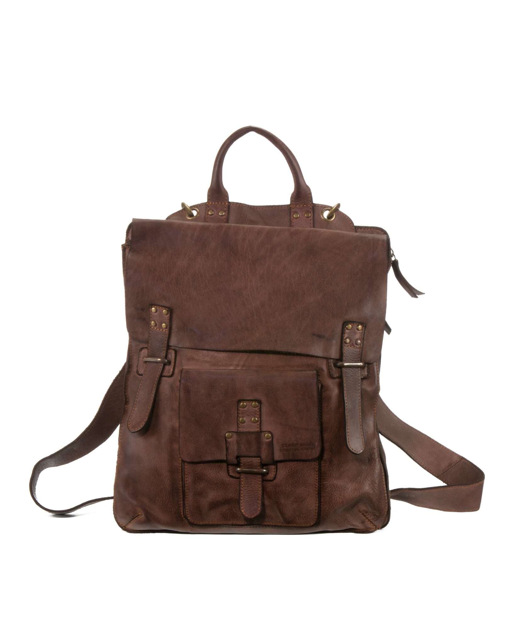 Bolso Mochila En Cuero Italiano Marron Noemi Fantini Pelletteria
