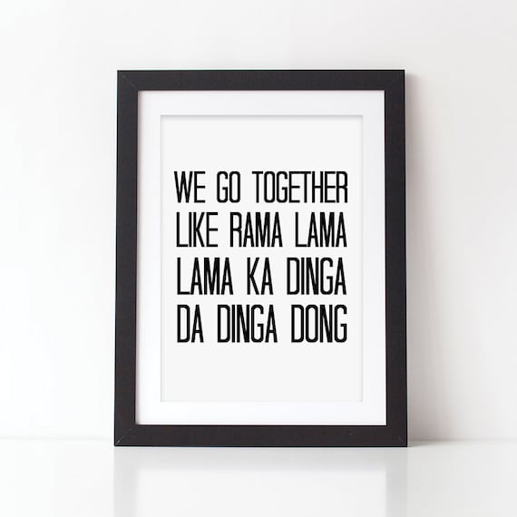 Grease Lyrics Print We Go Together Quote Print Monochrome Etsy