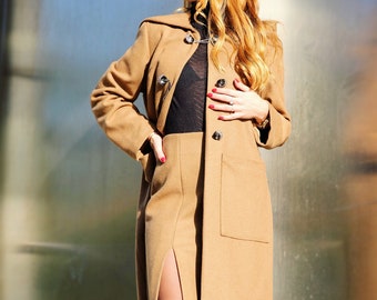 Abrigo Para Mujer De Nonbrabd Doble Botonadura Chaqueta Larga De Invierno Estilo Vintage Tallas L M S Xs Beige Beige Large Amaz Abrigos Ropa Abrigos Largos
