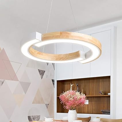 Kaisimys Lamparas Colgantes De Madera Lampara Colgante De Anillo Led Lampara De Mesa De Comedor Moderna Lampara Colgante De Diseno Acrilico De Metal Redondo Lampara Interior De Madera Altura Ajustabl Amazon Es Hogar