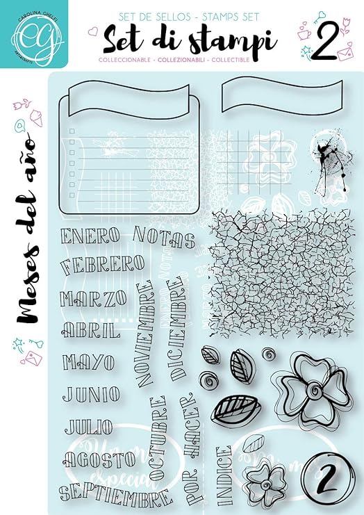 Carolina Ghelfi 31 Stamps Clear Stamps Set N 2 Meses Del Ano Espanol 5 90 X 8 26 15 Cm X 21 Cm For Bullet Journal Bullet Journaling Scrapbooking Cardmaking Amazon Co Uk Kitchen Home