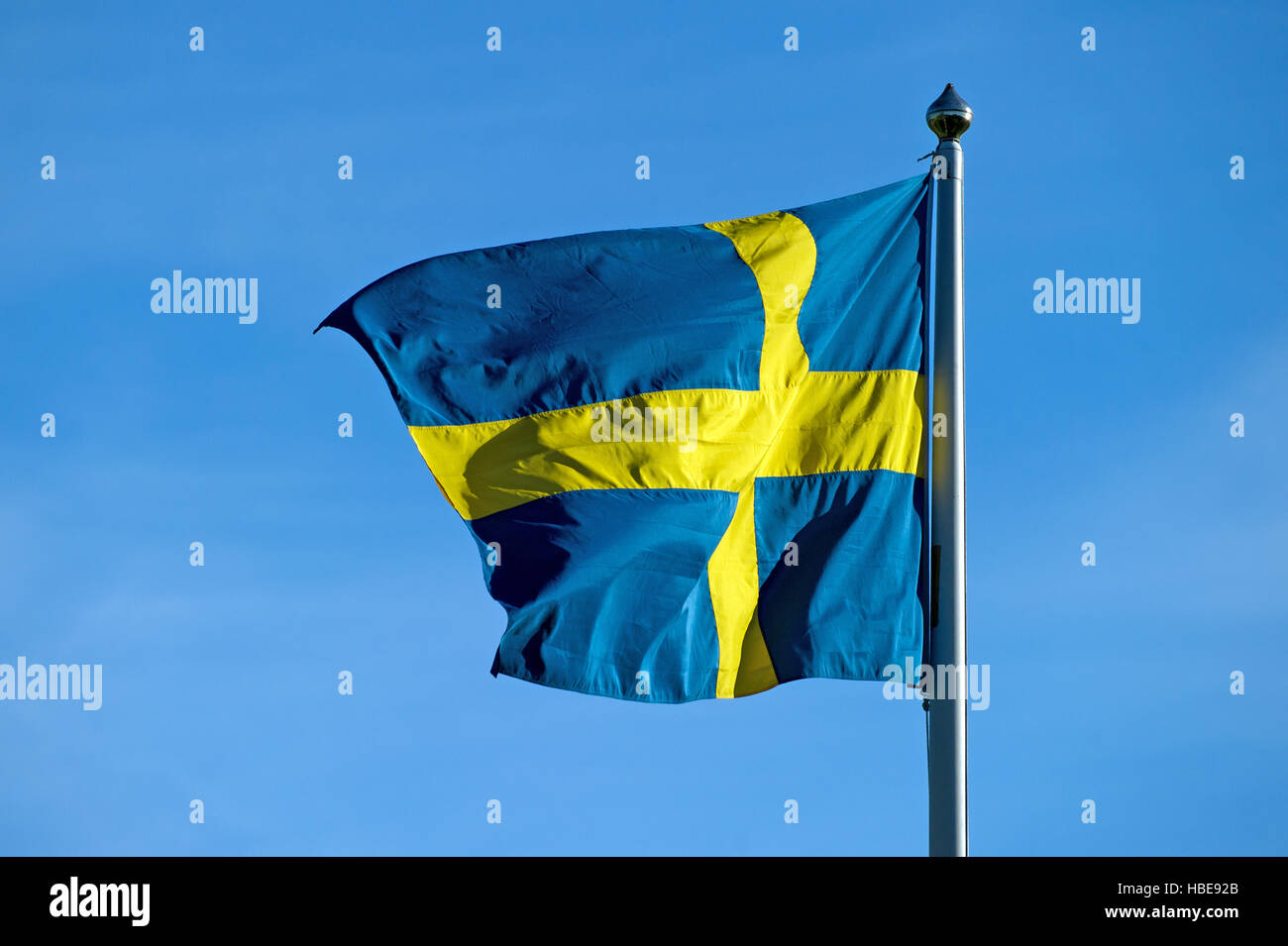 El Sueco Bandera Amarilla Y Azul En El Viento Contra Un Cielo De Verano Azul Desde Flagstaff Fotografia De Stock Alamy