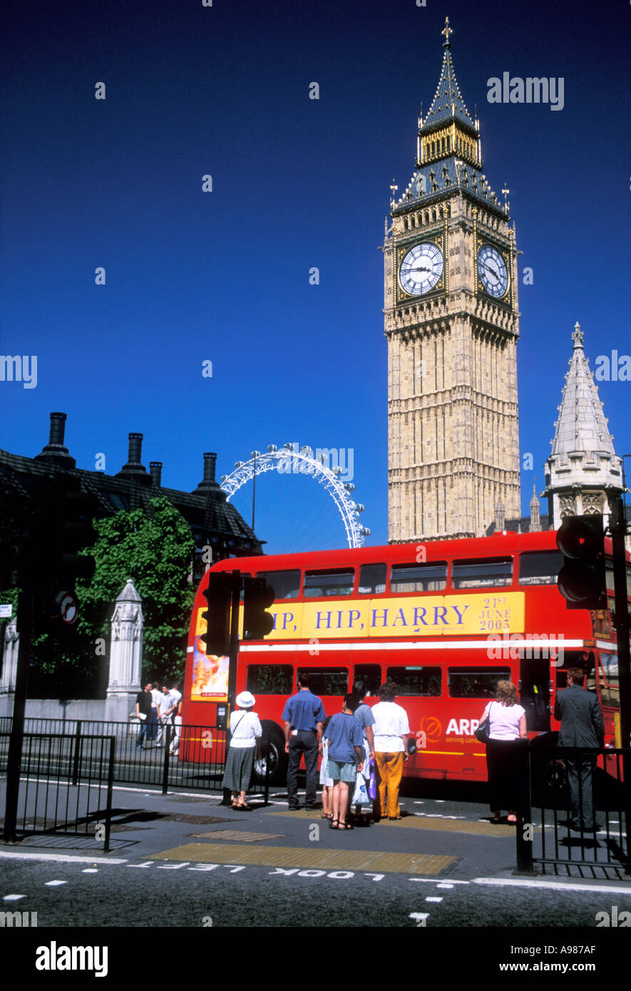 Big Ben London Eye Houses Of Parliament Tourists Red Bus London Stock Photo Alamy