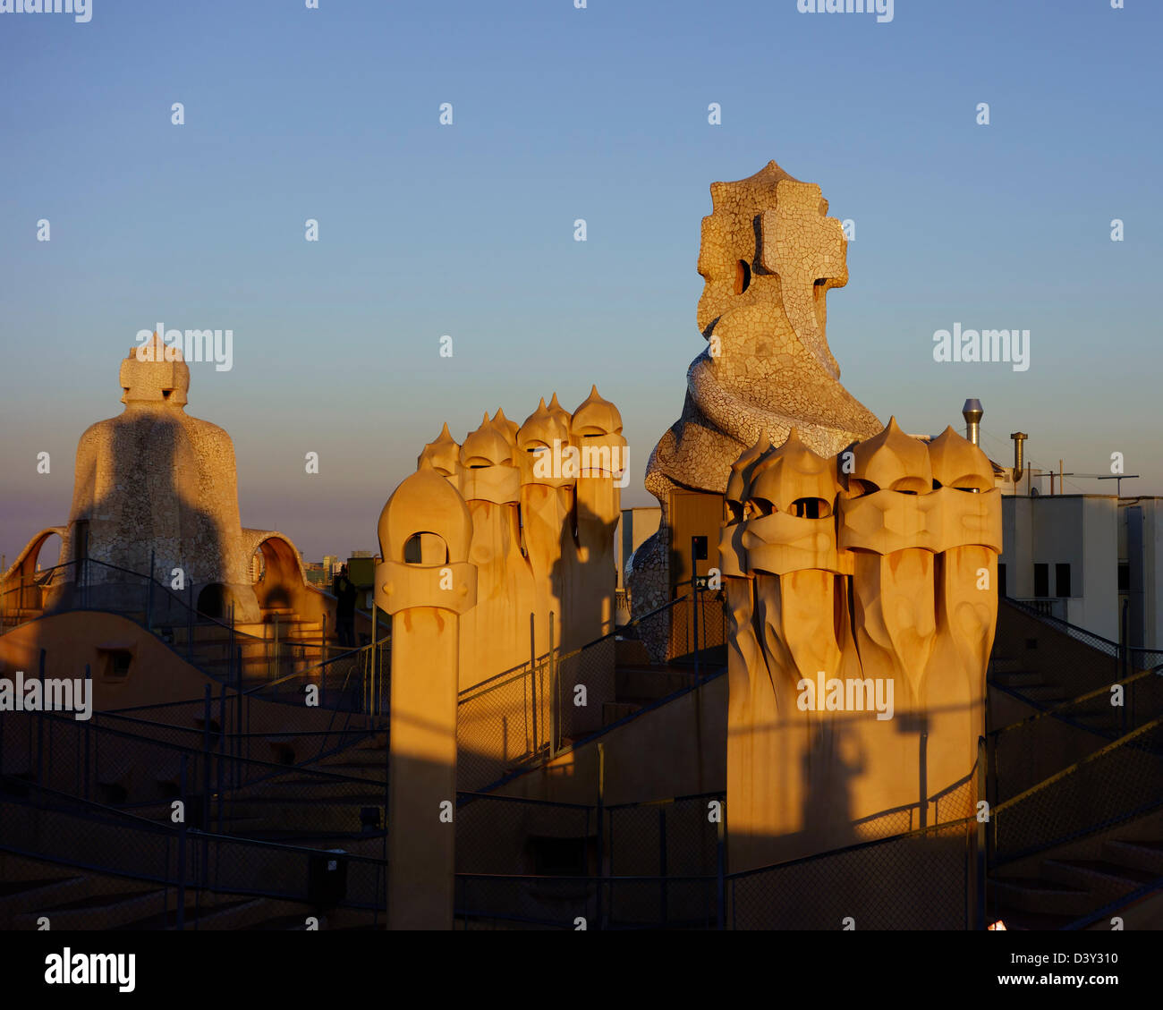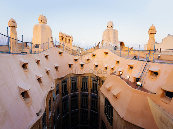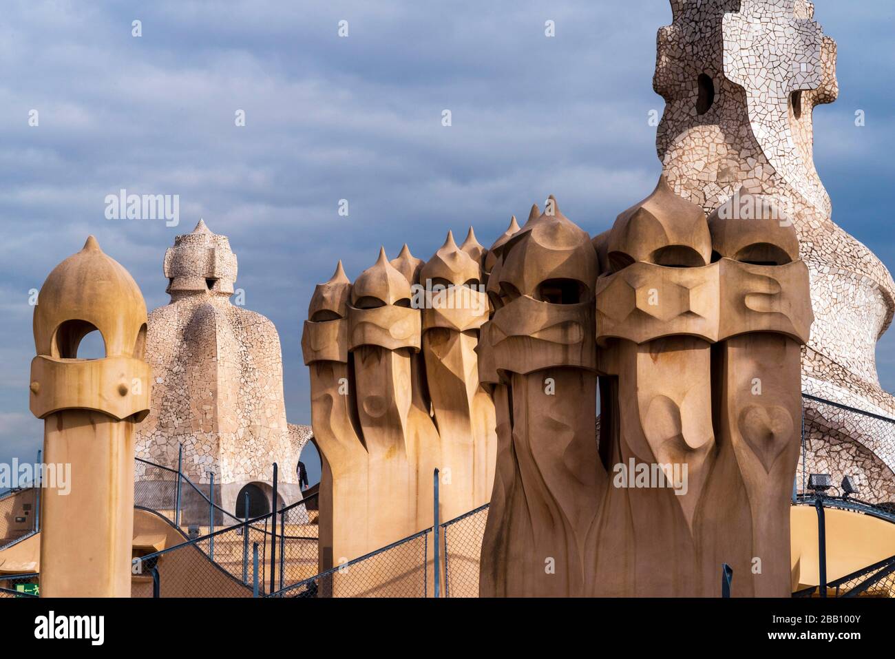 La Pedrera or casa Milà roof Colours and view The terrace is without doubt the most impressive part of the building Its amber colour contrasts with the magnificent blue of the Barcelona sky and the view of the city is breathtaking!. Barcelona Casa Milà (La Pedrera) Rooftop Perhaps there are lots of traditional chimney pots that look like faces, but none as can be as spectacular as those on the roof of Casa Milà (La Pedrera) in Barcelona This modernist building in Barcelona, designed by Catalan architect Antoni Gaudi, was built between 1906 and 1912 When it was built. Perhaps there are lots of traditional chimney pots that look like faces, but none as can be as spectacular as those on the roof of Casa Milà (La Pedrera) in Barcelona This modernist building in Barcelona, designed by Catalan architect Antoni Gaudi,was built between 1906 and 1912.