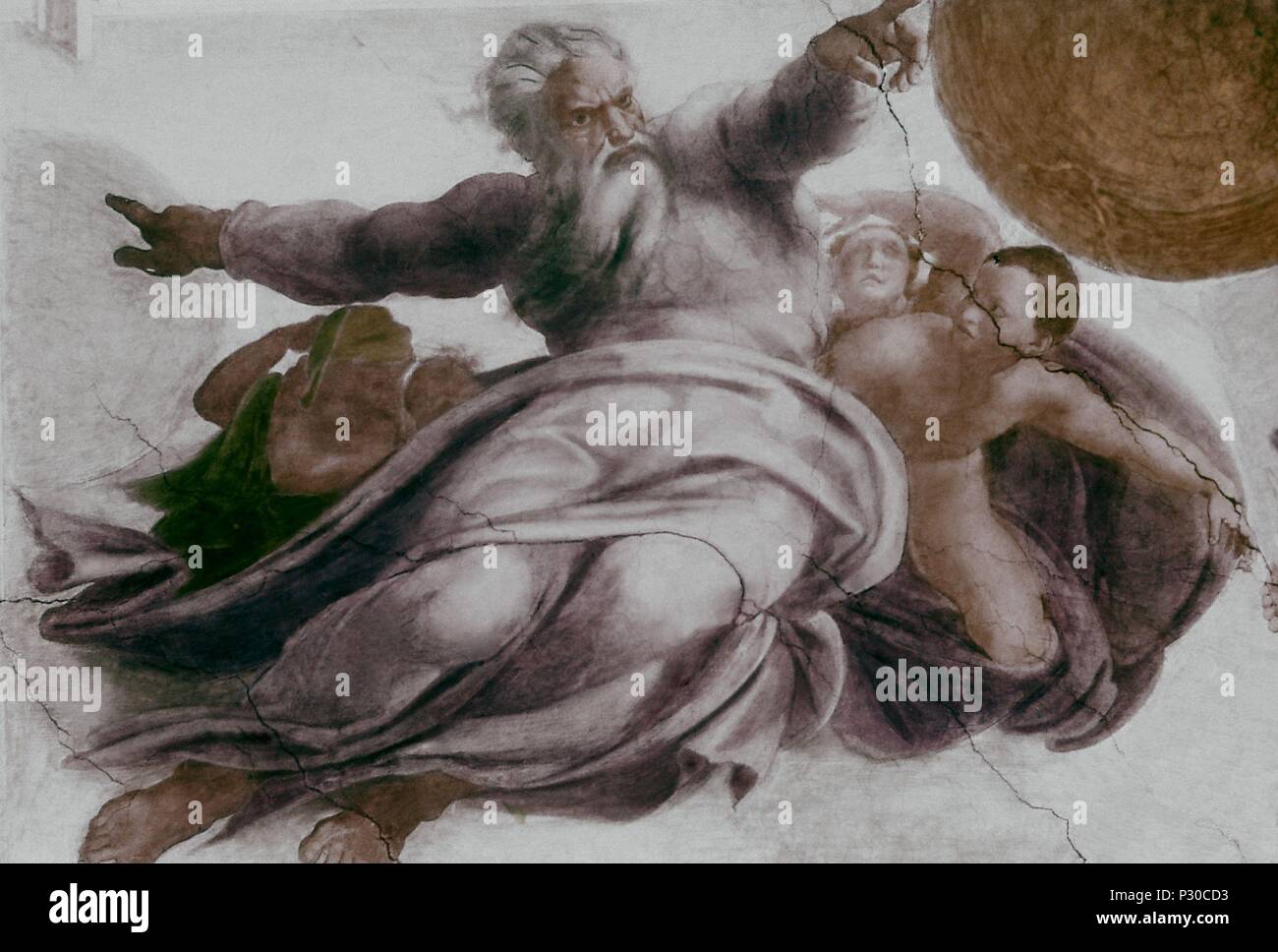 Creacion Del Sol Y La Luna Antes De La Restauracion Autor Miguel Angel 1475 1564 Ubicacion Museos Vaticanos Y Capilla Sixtina Vaticano Fotografia De Stock Alamy