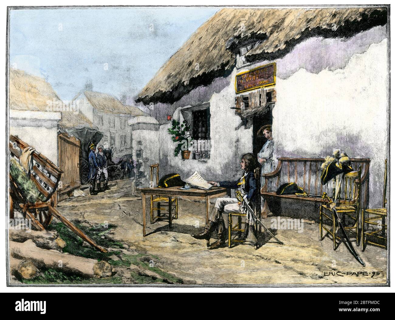 Napoleon En El Camino Entre Paris Y Niza Escribiendo Una Carta A Josephine 1796 Medio Tono De Color A Mano De Una Ilustracion Fotografia De Stock Alamy