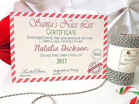 J R Boutique Carta De Papa Noel Personalizada Con Certificado De Lista De Santa Niza 2 Hojas Amazon Es Hogar