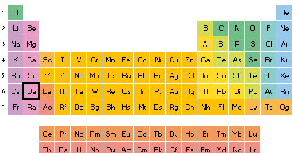 La tabla periódica interactiva de los elementos de Fisher Scientific es una versión adaptada al siglo XXI de la ingeniosa creación de Mendeleev Sus características interactivas le permitirán ver con facilidad el número atómico y otras propiedades importantes de todos los 118 elementos haciendo clic en la tabla periódica. Tabla de los elementos que colocan elementos con propiedades químicas similares muy juntos pnictogen Element en el grupo 15 elemento representativo (también, elemento del grupo principal) Elemento en las columnas 1, 2 y 12–18 metal de transición Elemento en las columnas 3–11 serie (también, período) Fila horizontal de la tabla de. El bario es un elemento químico de la tabla periódica cuyo símbolo es Ba y su número atómico es 56 Metal alcalinotérreo, el bario es el 18º elemento más común, ocupando una parte de 00 de la corteza terrestre Su masa atómica es 137,34 Su punto de fusión está a 725 °C, su punto de ebullición a 1640 °C, y su densidad.