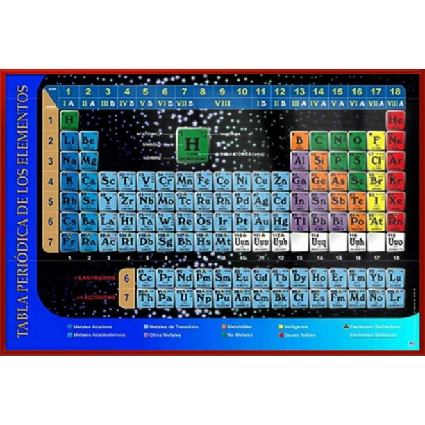 Periodic Table Of Elements Framed Spanish Educational Poster Print Tabla Periodica De Los Elementos Size 36 X 24 Walmart Com Walmart Com