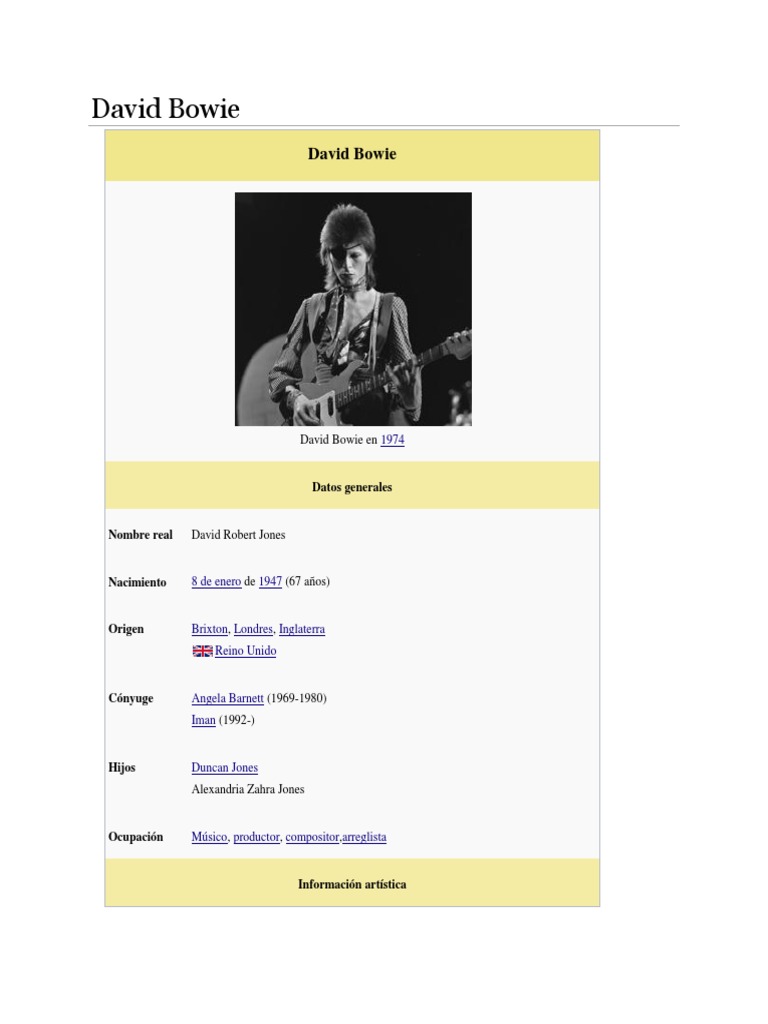 Cracked Actor fue compuesta por David Bowie (también conocido como David Robert Jones) Puedes ver la primera página de cualquier partitura antes de adquirirla Esto te permitirá tomar una decisión de compra más fundamentada, y con decenas de miles de partituras para elegir, seguro que hay una apropiada para ti. 338 letras de David Bowie por orden alfabético Ver todas sus letras Sobre David Bowie Slash, guitarrista de los Guns and Roses encontró a su madre en la cama con el cantante Bowie desnudos 7 4 David Bowie está en la posición 422 del ranking de esta semana, su mejor puesto ha sido el 10. Aprende esta canción y muchas mas en acordesweb.