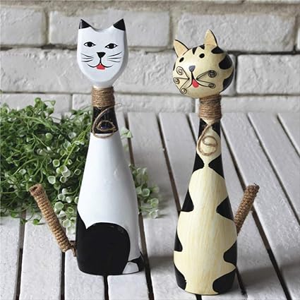 Shiyzii Adornos Creativos De Animales De Madera Linda Pareja Gato Decoracion Del Hogar Artesania Decoracion Decoracion Decoracion Decoracion Amazon Es Hogar