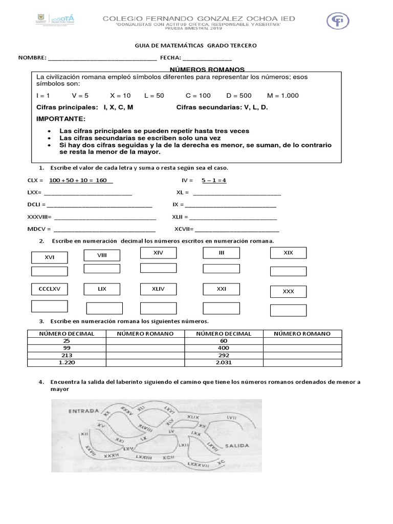 Numeros Romanos Actividad 8 De Marzo Ensenanza De Matematica