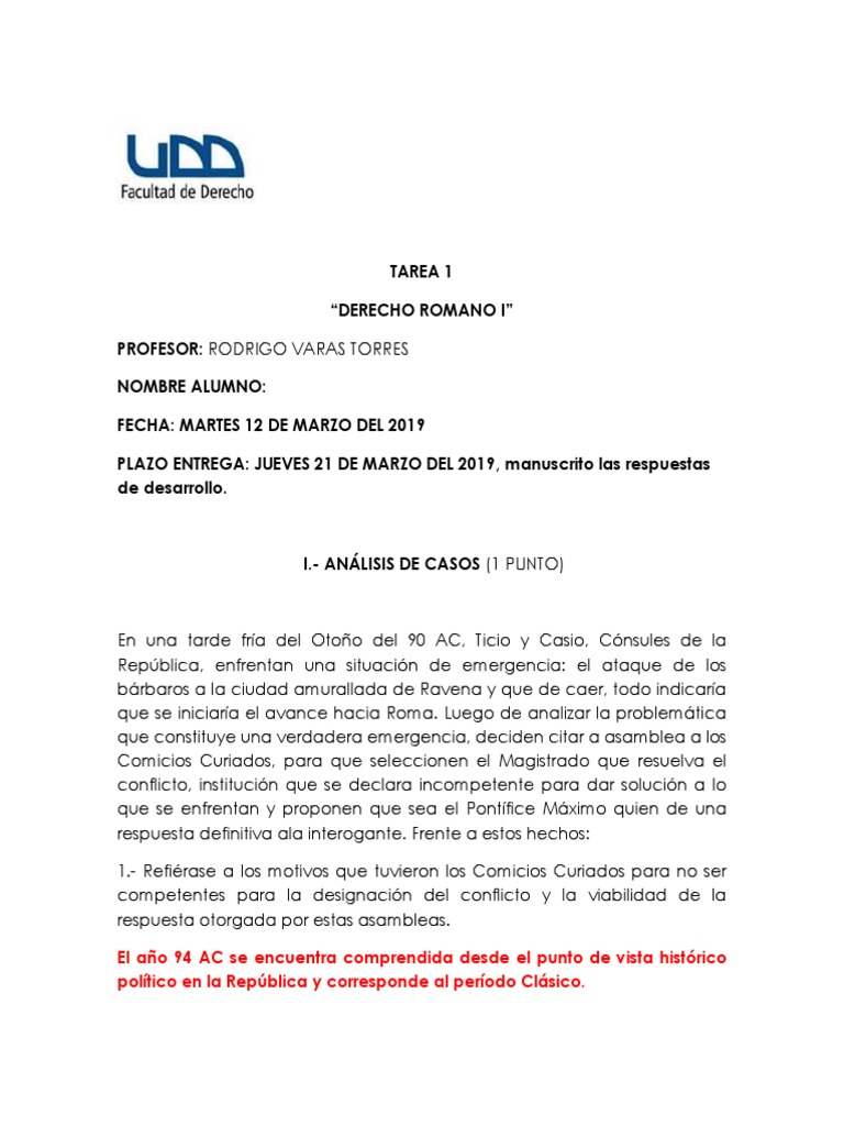 Tarea 1 Derecho Romano I Profesor Rodrigo Varas Torres Nombre Alumno Fecha Martes 12 De Marzo Del 19 Plazo Entrega Jueves 21 De Marzo Del 19 Manuscrito Las Respuestas De Desarrollo Roma Antigua Antiguedad Clasica