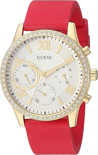 Amazon Com Guess Comfortable Gold Tone Red Stain Resistant Silicone Watch With Day Date 24 Hour Military Int L Time Color Red Model U1135l6 Watches