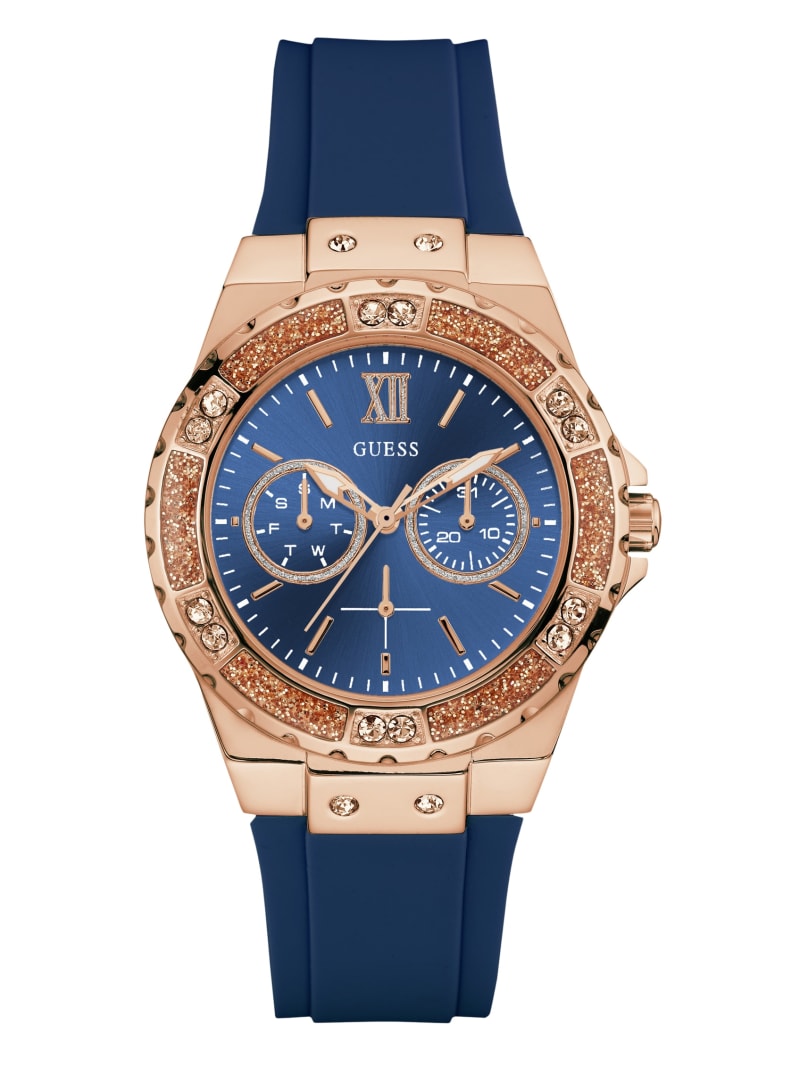 Women S Guess Dark Blue Silicone Strap Watch U0325l8