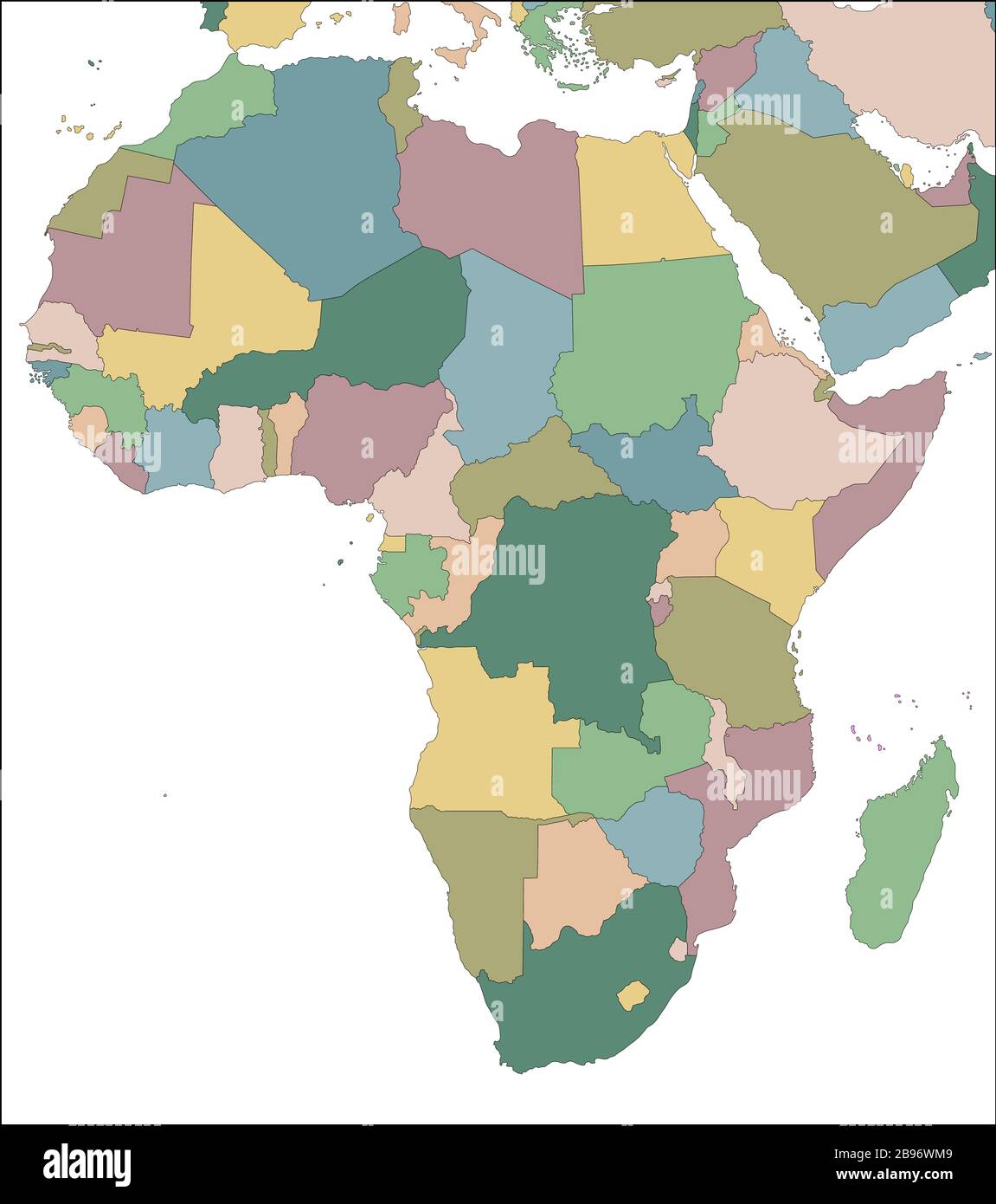 Mapa Politico Del Continente Africano En Colores Cmyk Con Fronteras Nacionales Y Etiquetas De Nombres De Paises Sobre Fondo Blanco Ilustracion Vectorial Imagen Vector De Stock Alamy