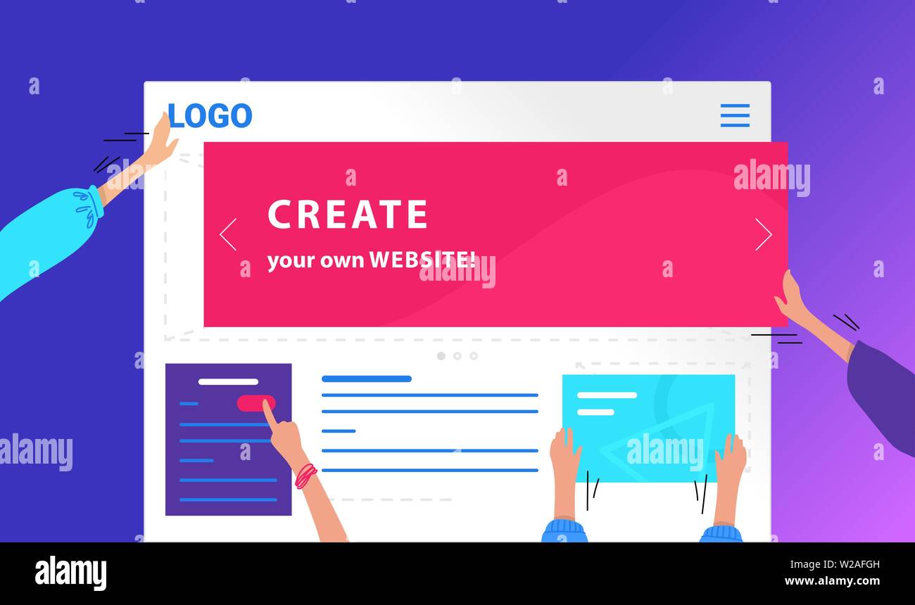 Crea Tu Propio Sitio Web Plana Neon Vectorial Diseno De Banner Web Ilustracion De Gradiente De Manos Humanas Colocar Pancartas Y Corpor Buttoms Y Desarrollo Imagen Vector De Stock Alamy