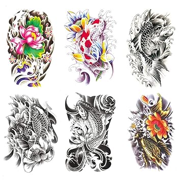 Oottati Old School Carp Koi Flower Arm Temporary Tattoo 2 Sheets Amazon In Beauty