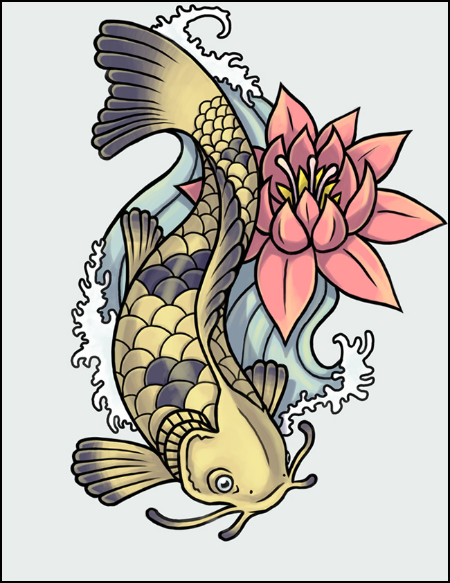 Koi fish tattoos are as varied and as popular as the animal they represent Koi tattoo designs are often combined with splashing water, cherry blossom and lotus flowers Koi fish are a species of carp (Koi is the Japanese word for carp) that are specially bred to have wild, brilliant color schemes Originally a ravenous pet species that stirred up silt in waterways, the Japanese have inbred them and turned them into gemlike marvels. Art Tattoo Sketches Art Japan Tattoo Design Koi Dragon Humanoid Sketch Japanese Koi Fish Tattoo Old School Tattoo Frog Tattoos Tatuajes PEZ KOICARPA JAPONESAMujerHombre (7 FOTOS). 26/jan/13 Explore a pasta "carp" de Rafael Silva no Veja mais ideias sobre carpa oriental, koi, carpa.