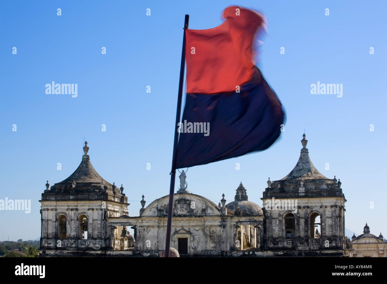 El Fsln Sandinista Bandera Roja Y Negra Ademas De La Catedral De Leon De Nicaragua Fotografia De Stock Alamy