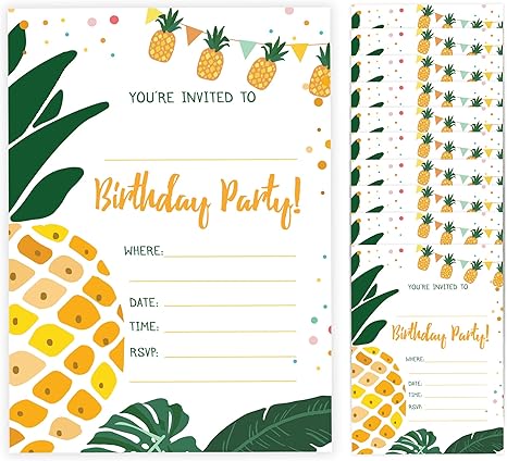 Amazon Com Tarjetas De Invitaciones De Cumpleanos Con Sobres Para Ninos Y Ninas Diseno De Pina Kitchen Dining