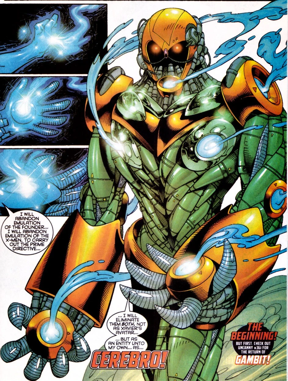 Cerebro is a fictional electronic device featured in comic books published by Marvel Comics It is considered part of the mainstream Marvel Universe and is associated with the XMen family of comic titles It first appeared in The XMen, Volume 1#7 in September, 1964 Cerebro has also appeared in alternate media relating to the XMen including the 02 XMen animated series and other cartoon. Issue Summaries Utopian as it may sound, we intend to have every released Xissue summarized in this database one day This section is not meant to replace comics far from it since no text adaptation can ever replace the unique medium that is a comic book, the blending of words AND art. By Matthew Sandage Nov 07, One of Charles Xavier, aka Professor X's, most wellknown creations is his mutant tracking AI known as Cerebro (a) And what Marvel fans may not know is that Erik Lehnsherr aka Magneto has his own Cerebro except he doesn't use it to track down and recruit mutants;.