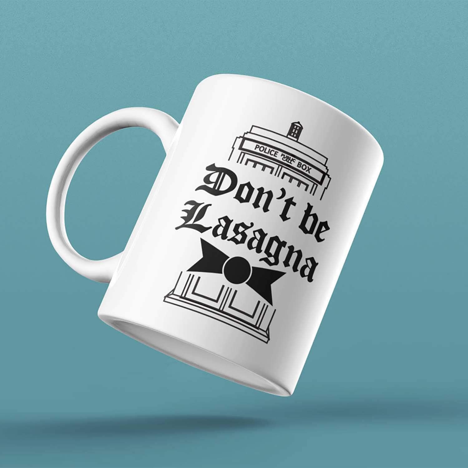 Amazon Com Doctor Who Themed Ceramic Coffee Cup Don T Be Lasagna 12th Doctor Quote Funny Geek Quote Doctor Who Meme Tardis Police Box Kitchen Dining