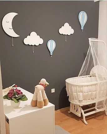 Juego De 5 Luces De Noche De Madera Con Led Para Decoracion De Habitacion De Ninos Y Bebes Azul Claro Amazon Es Bebe