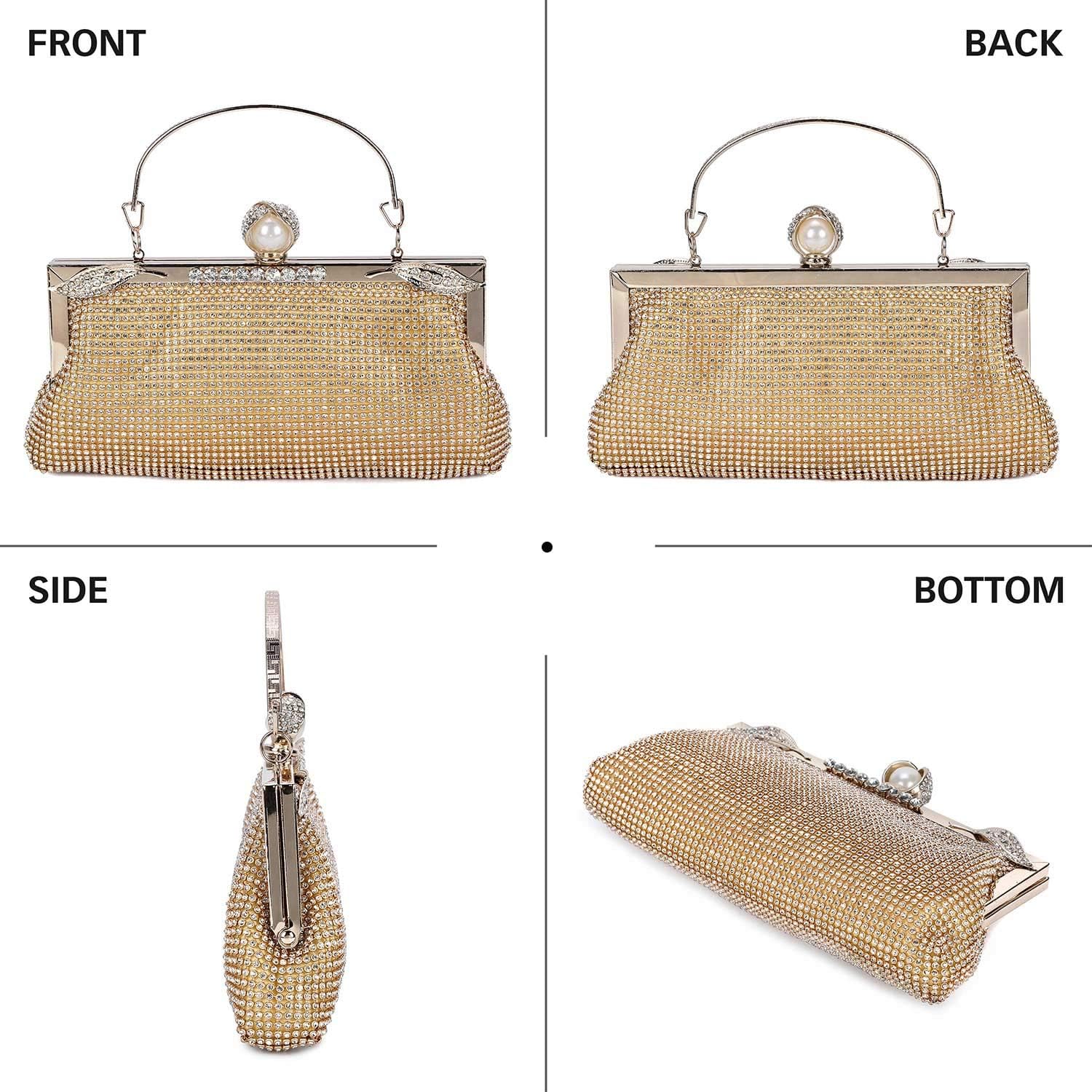 Anladia Bolso De Fiesta Boda De Mujer Bolsos De Mano Cartera De Mano Tipo Clutch Decorado Con Glitter Brillantes Estilo Romantico Cadena Larga 1cm Para Fiesta Cena Boda Salidas Dorado