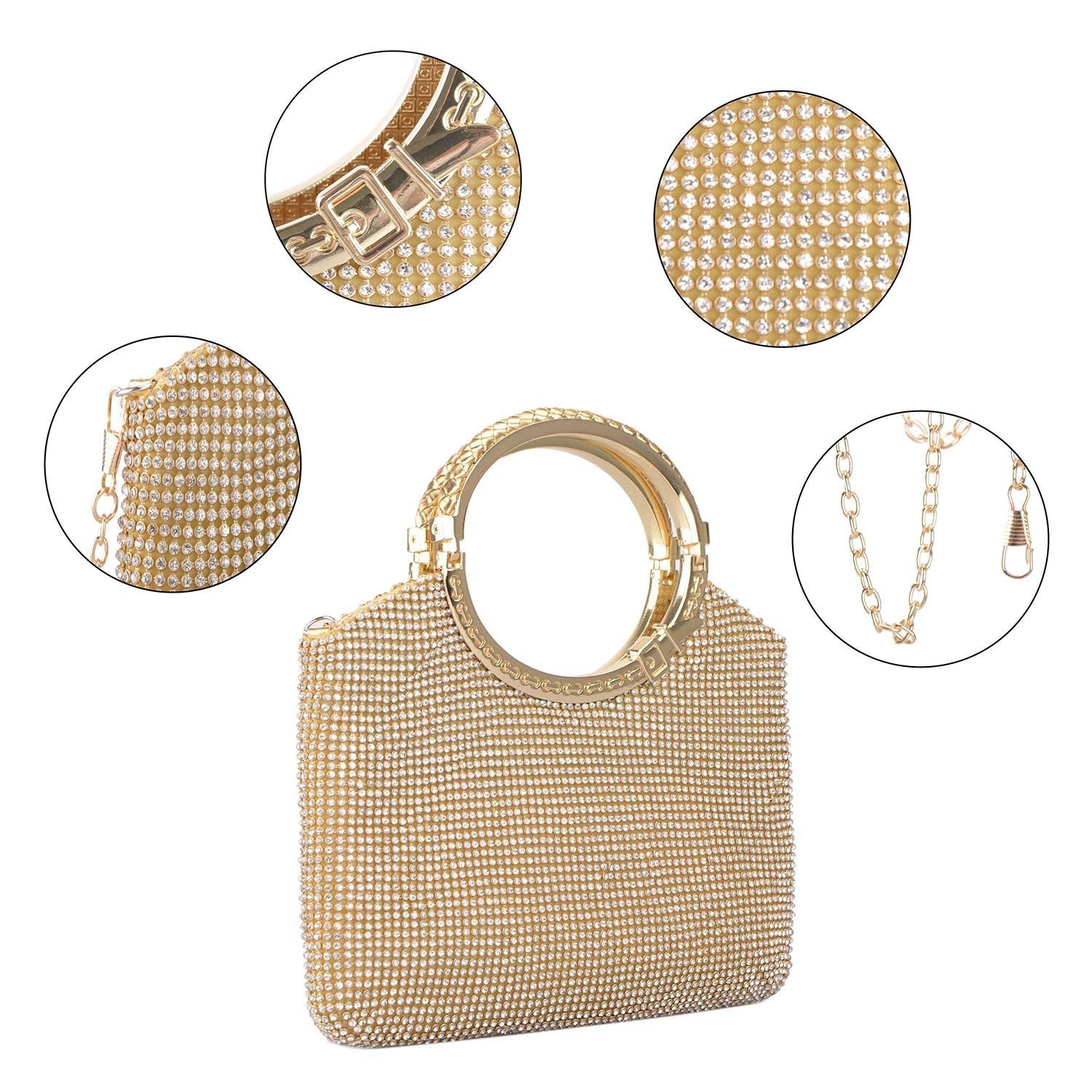 Bolsos Diamantes Clutch Mujer Fiesta Carteras De Mano Bolso De Noche Bandolera Con Cadena Para Ceremonia Novia Baigio Bolso De Boda Dorado Zapatos Y Complementos Motovation Accessory Com Sg