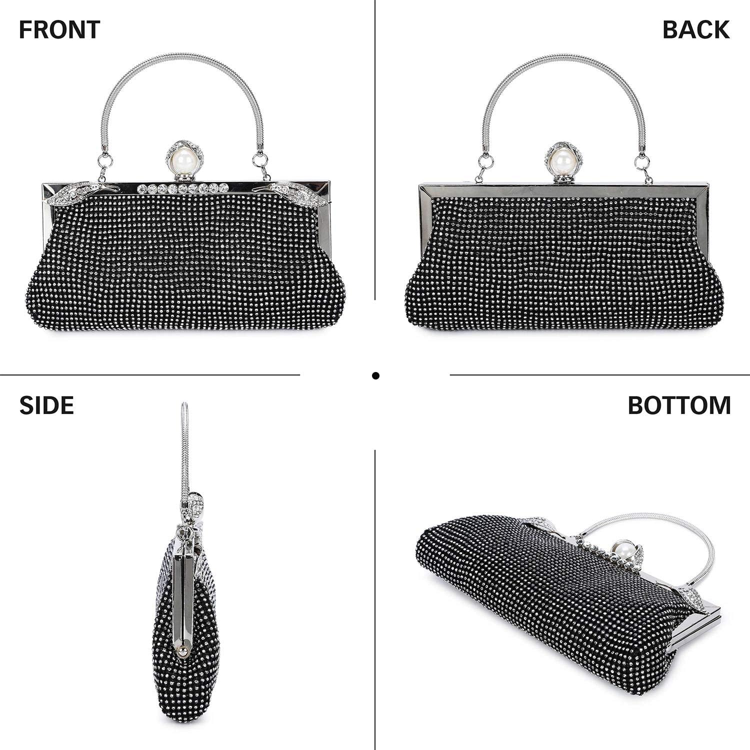 Mujer Bolsos Cuero Sintetico Bolso De Mano Pedreria Boda Fiesta Evento Fiesta Negro Dorado Plata 21 28