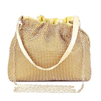 Bolso De Noche De Lujo Bolso De Hombro Mujer Glitter Diamond Embrague Bolsos De Hechos A Mano Cadena De Encogimiento Para Boda Fiesta Baile Dorado Amazon Es Equipaje