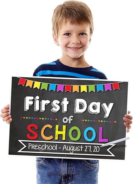 Amazon Com Canopy Street First Last Day Of School Juego De Pizarra Reutilizable Para Fotos Texto En Ingles Office Products